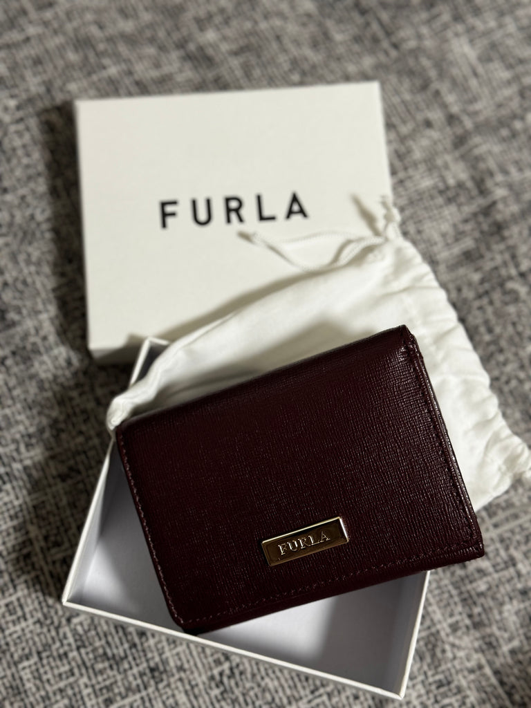 Furla207 香港現貨 經典皮 禮盒裝 酒紅色 有相位 3摺銀包 【平行進口】